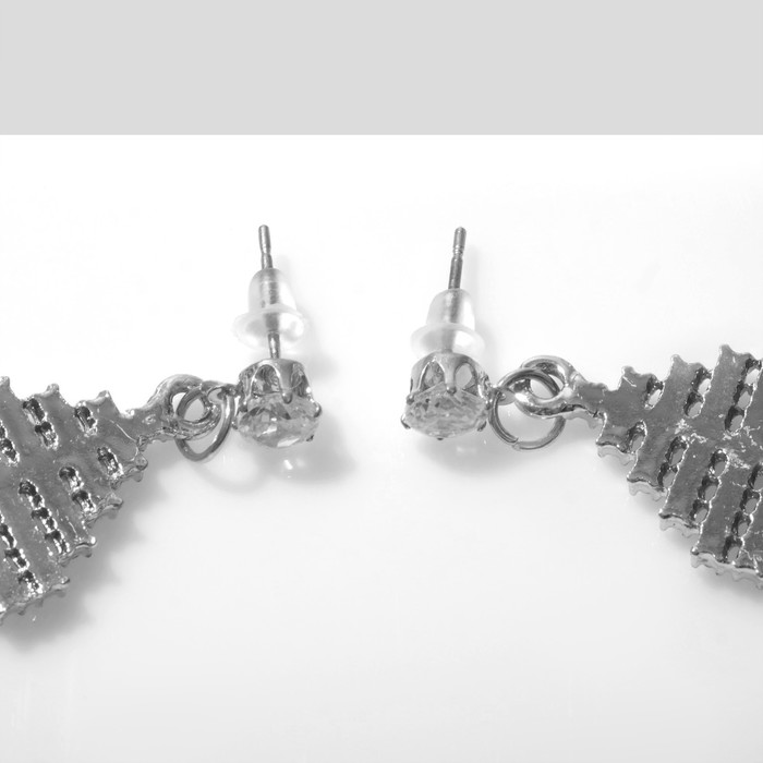Серьги со стразами «Рыбки» миниатюрные, цвет белый в серебре