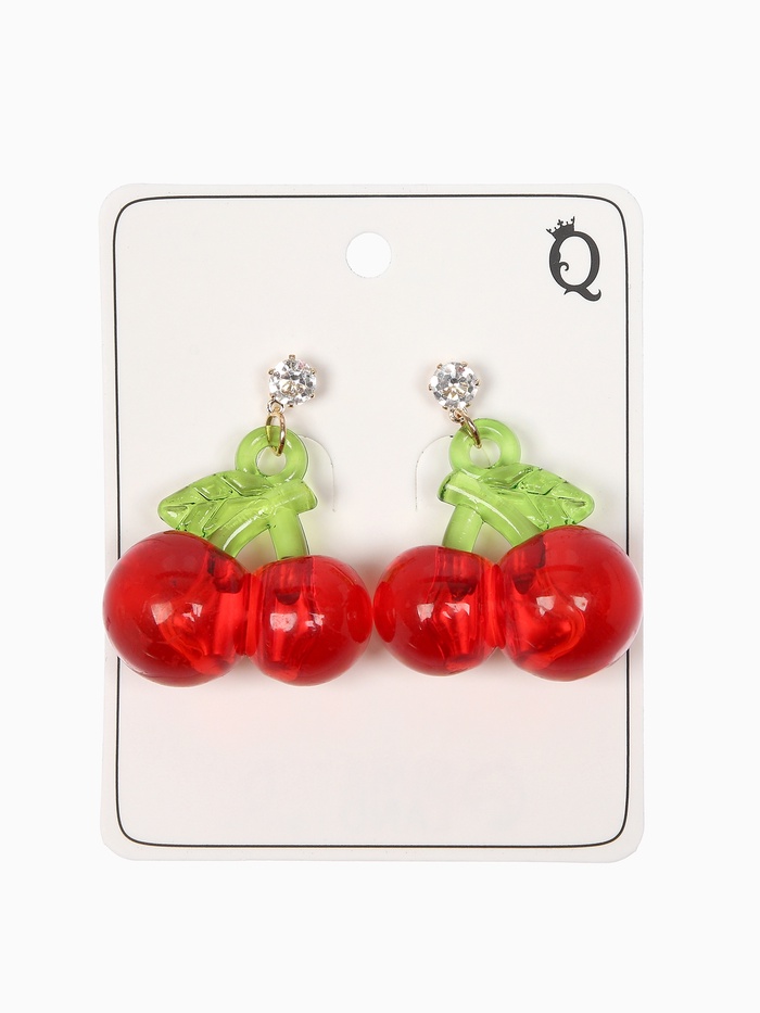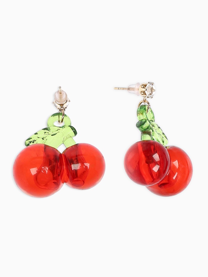 Серьги "Вишня" объемная, цвет красно-зелёный в золоте
