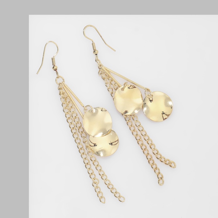 Серьги висячие «Круги мятые» с цепочками, цвет золото, 9 см