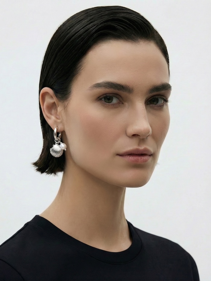 Серьги жемчуг "Ракушка со звездой", цвет белый в серебре