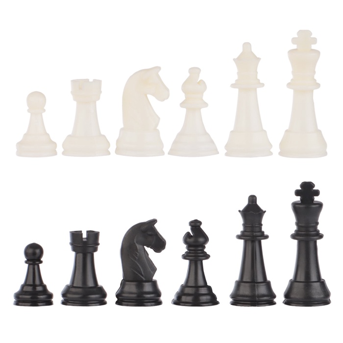 Компактные шахматные фигуры из пластика подойдут для настольных игр дома, в поездке или на учебных занятиях. Они сохраняют классические пропорции и удобны в использовании даже на небольшой доске.