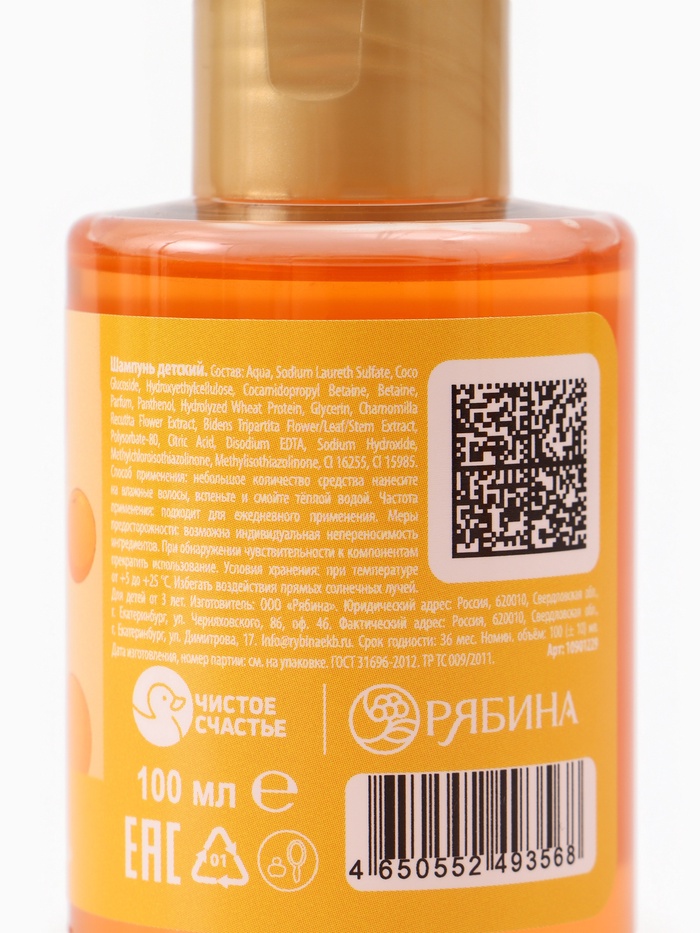 Шампунь детский, аромат мандариновый лимонад, 100 мл, Кошечка