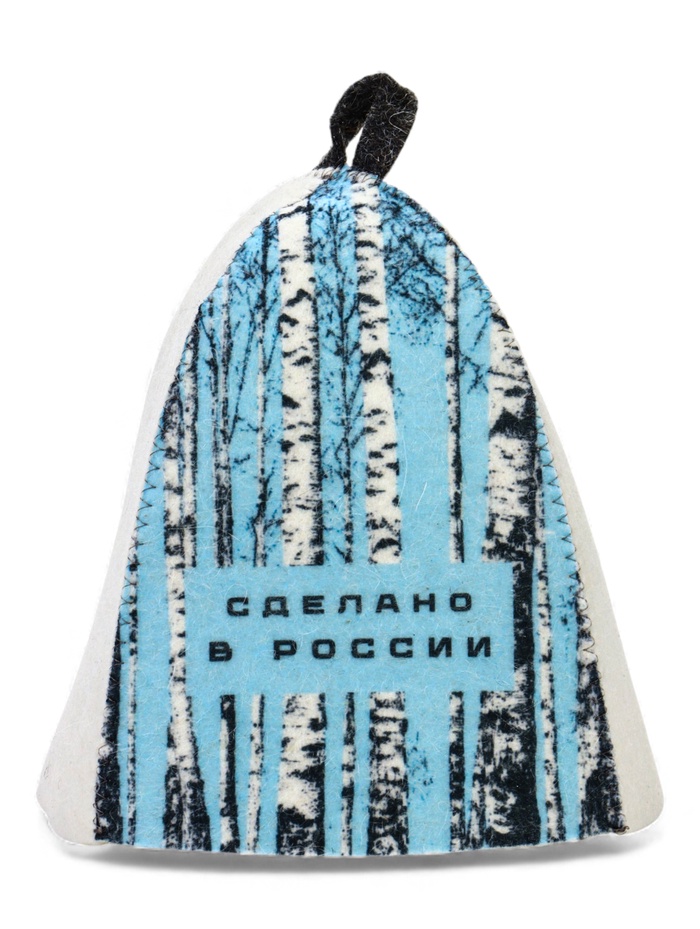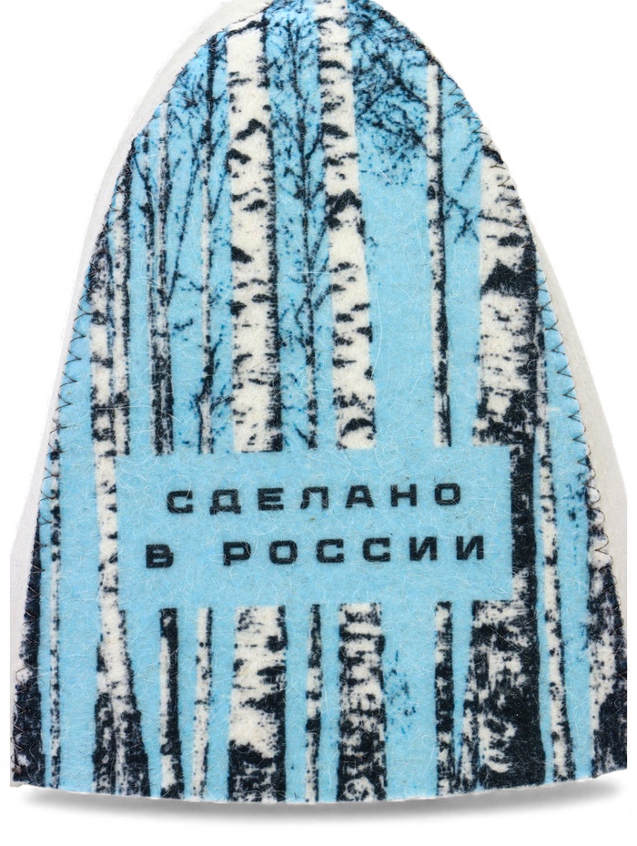 Шапка для бани с принтом "Березки и небо", белая