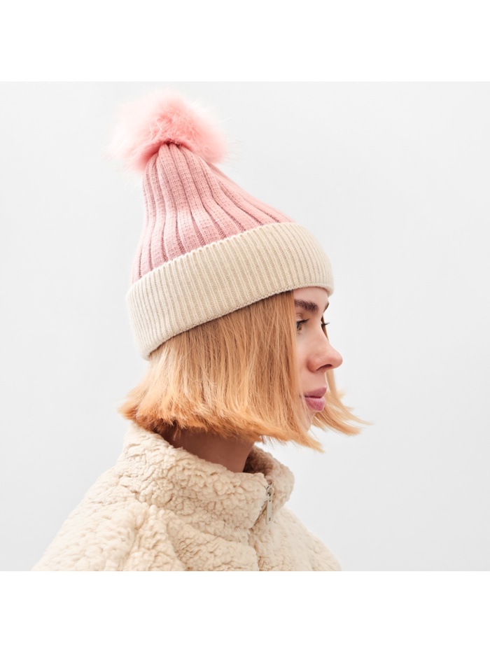 Шапка женская MINAKU с помпоном, розовая, размер 58-60