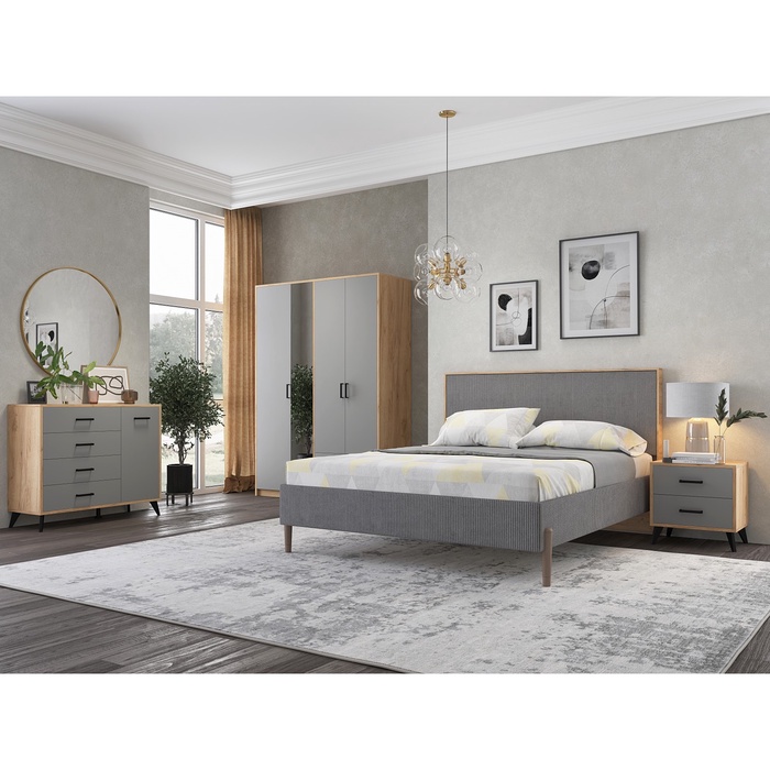Шкаф 4-х дверный с зеркалом Svetlana Loft, 1478 х 540 х 2074, Дуб золотой/Серый