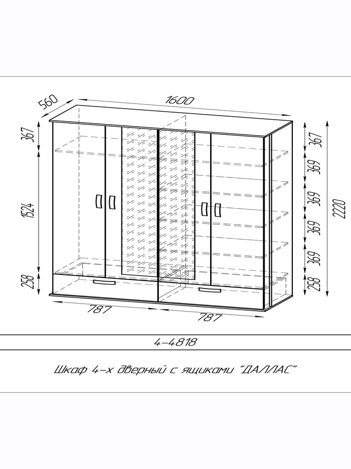 Шкаф четырёхдверный «ДАЛЛАС», 2 ящика, 160×56×2220 мм, цвет графит/дуб крафт табачный