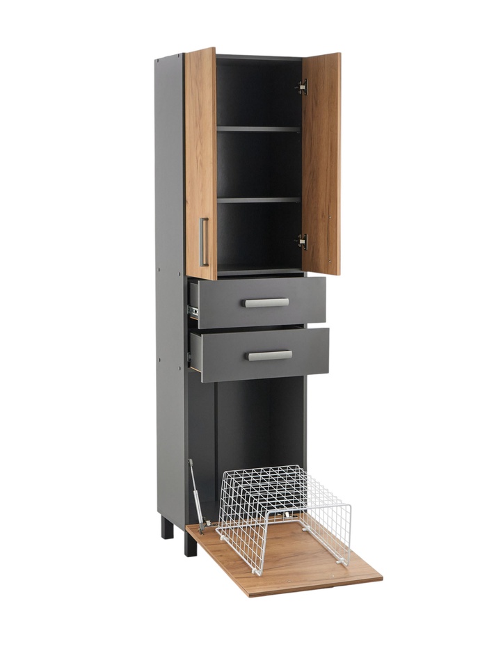 Шкаф – пенал для ванной комнаты «Пронто», с корзиной для белья, 500×330×1850 мм, цвет графит/дуб золотой