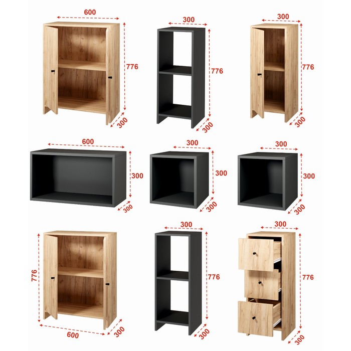 Шкаф – стеллаж «Комплект 1», 1200×300×1852 мм, цвет дуб крафт/антрацит