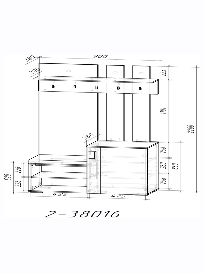 Шкаф в прихожую «ДУЭТ», с вешалкой. с полками, 900×380×2200 мм, цвет графит/дуб крафт табачный/МДФ графит