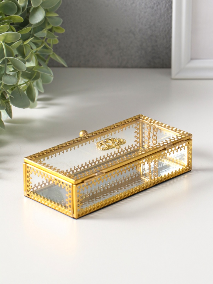 Шкатулка стекло с металлическим каркасом "Корона" золото 14,2х6,8х3,5 см