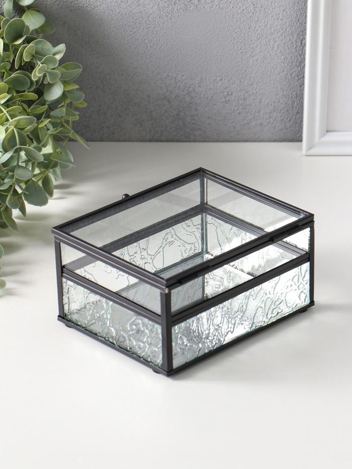 Шкатулка стекло с металлическим каркасом "Проталины" прозрачная 11,5х15х7,3 см