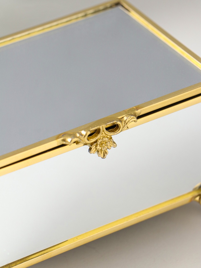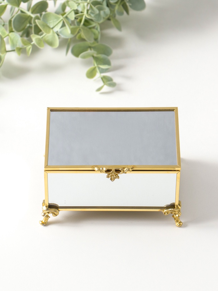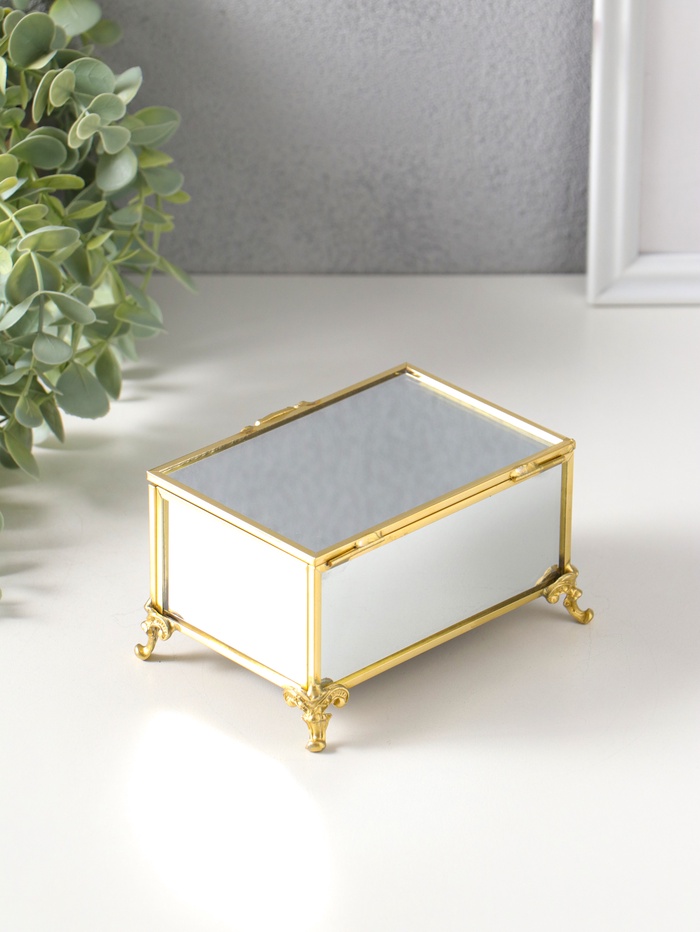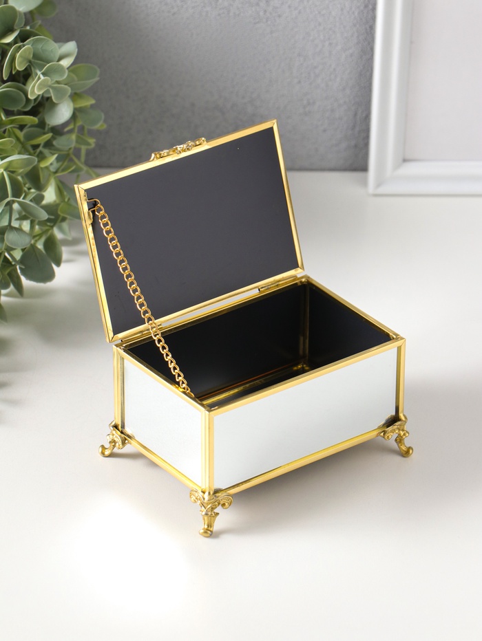 Шкатулка стекло с металлическим каркасом "Зеркальная на ножках" золото 12х8х7,3 см