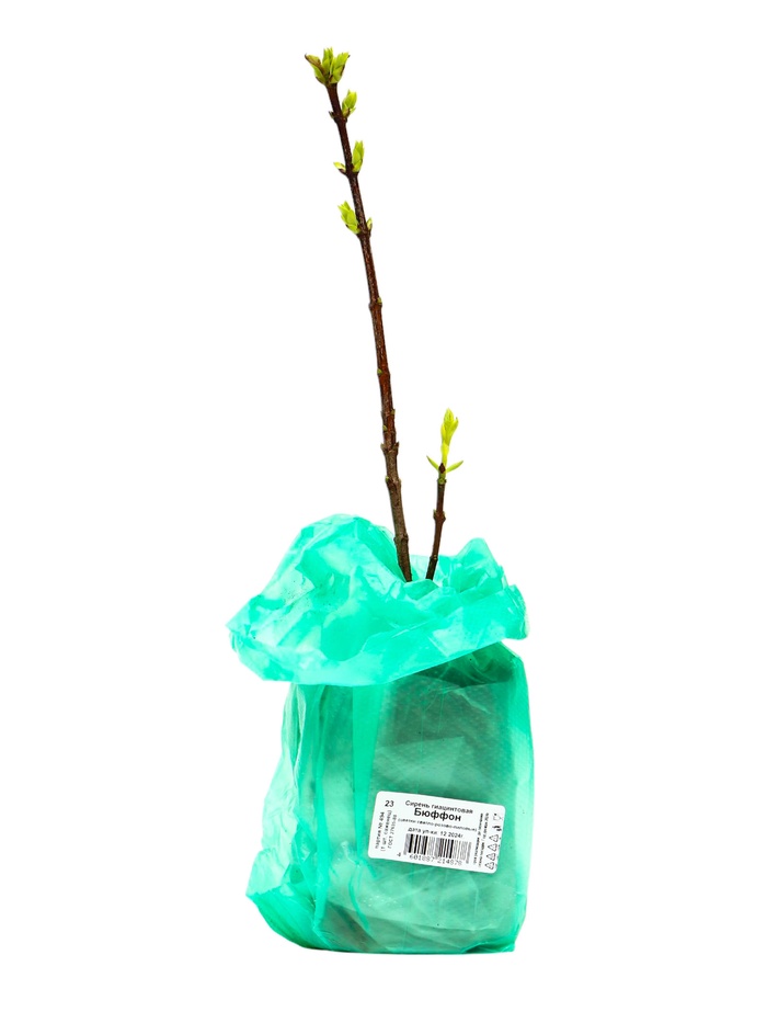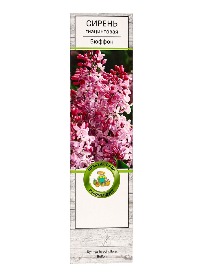 Сирень "Бюффон" — среднерослый кустарник, достигающий 2.5 м в высоту и 3.5 м в ширину. Годовой прирост объема — 30 см. Листья сердцевидной формы с волнистым краем, изумрудные, с заостренным кончиком.