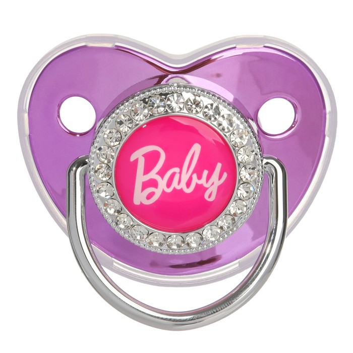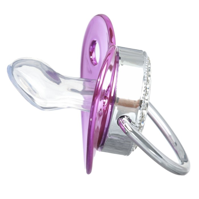 Роскошная пустышка со стразами Соска со стразами ортодонтической формы скошенная. Современный и модный дизайн пустышки со стразами не оставит равнодушным никого из взрослых и детей. Очень стильная и модная детская соска повторяет форму соска материнской груди во время кормления. Даже детки с зубами могут пользоваться ей, ведь она очень плотная.