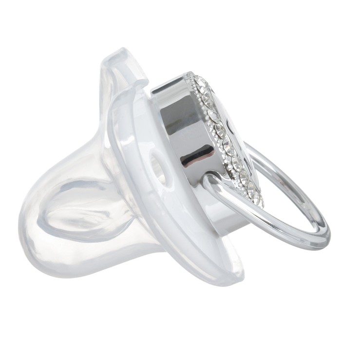 Роскошная пустышка со стразами Соска со стразами ортодонтической формы скошенная. Современный и модный дизайн пустышки со стразами не оставит равнодушным никого из взрослых и детей. Очень стильная и модная детская соска повторяет форму соска материнской груди во время кормления. Даже детки с зубами могут пользоваться ей, ведь она очень плотная.