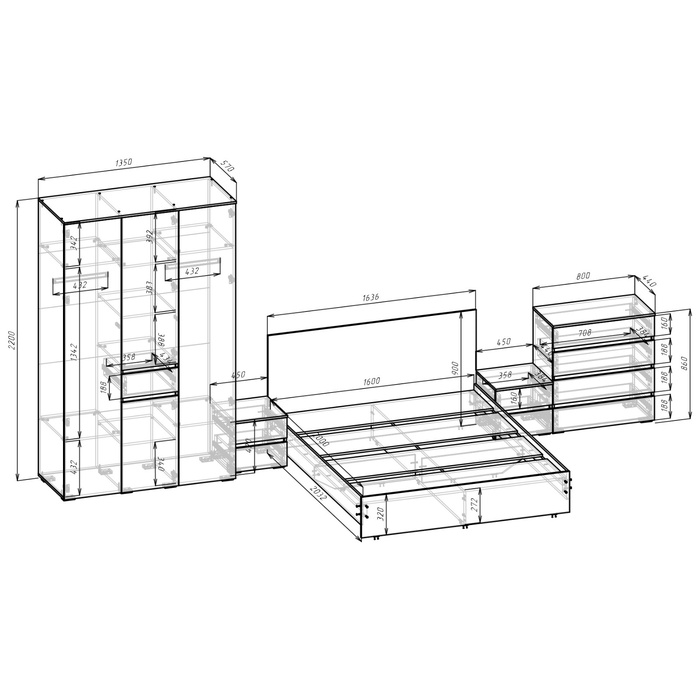 Решение для создания функциональной и стильной спальни, обеспечивая удобство, порядок и гармонию в интерьере. Включает в себя основные предметы мебели для спальни выполненные в едином стиле.