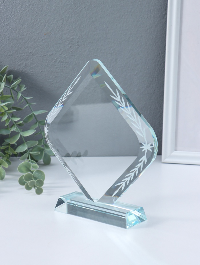 Стела наградная стекло "Ромб" площадка 17,5х18,3 см 3,5х17,5х20 см