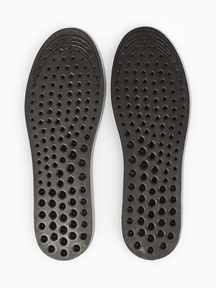Рельефная поверхность стелек обеспечивает микромассаж стопы при ходьбе, улучшая кровообращение и снижая усталость. Лёгкий и гигиеничный материал EVA амортизирует шаги, принимая анатомическую форму вашей стопы. Просто поместите их в ваши кроссовки, туфли или рабочую обувь — и ощутите разницу с первого дня.
