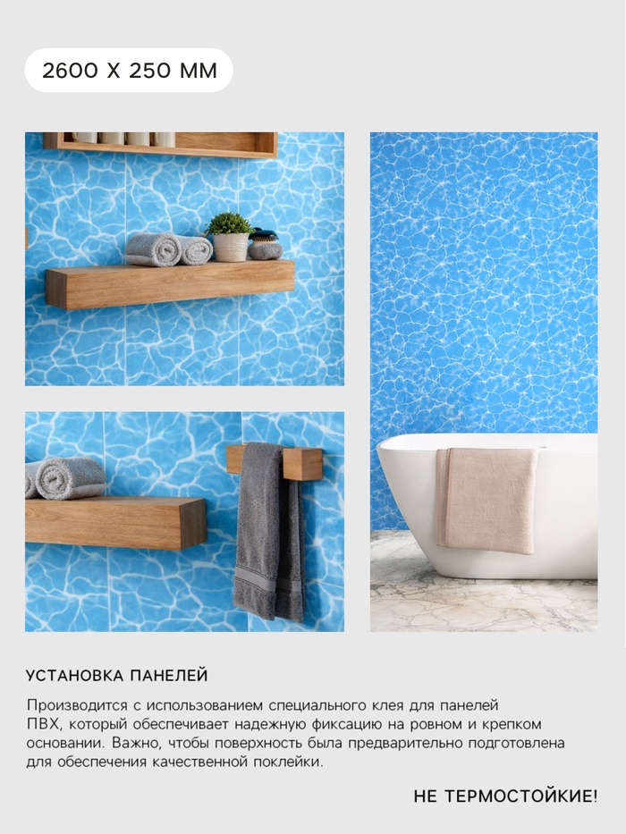 Стеновая панель ПВХ, «Водный мир», фон, 2.6×0.25 м, цвет голубой