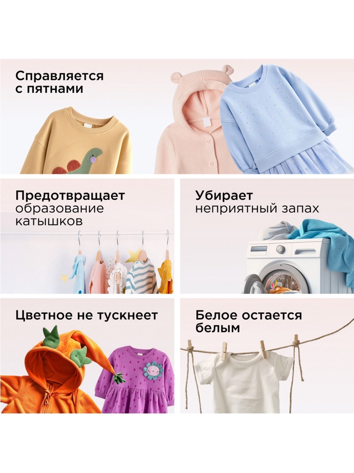 Мягкая и надёжная забота о чистоте вещей ваших малышей. Этот экологичный порошок создан специально для детской одежды: он эффективно справляется с типичными детскими загрязнениями, бережно очищая ткани и сохраняя их мягкими и безопасными для чувствительной кожи.