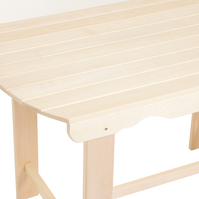 Деревянный стол имеет прочную и надёжную конструкцию, способную выдерживать значительные нагрузки. Подходит для использования в гостиной, на кухне, в столовой, на террасе или в саду.