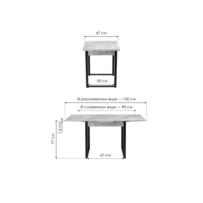 Стол деревянный Форли металл, бетон/черный 67x90x77 см