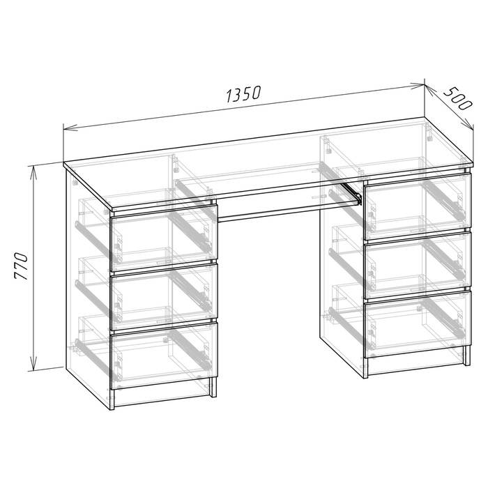 Стол письменный «Мадера», 6 ящиков, 1360×500×770 мм, цвет белый