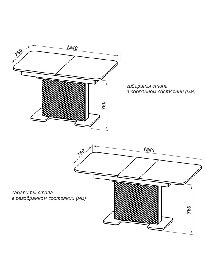 Стол раздвижной Урания, столешница 22 мм, 1240+300х750, Белый