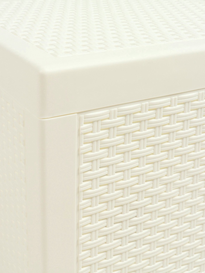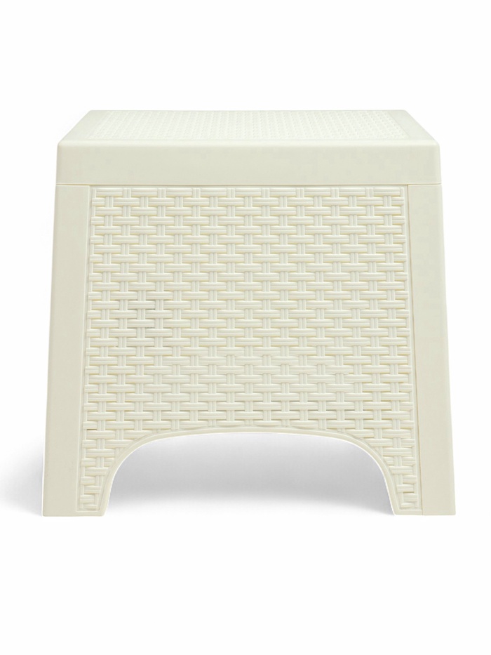 Компактный пластиковый стол с эффектом плетеного ротанга. Идеальные габариты 43.5×39.5 см для использования в качестве кофейного или сервировочного столика. Классический белый цвет легко впишется в любой интерьер.
