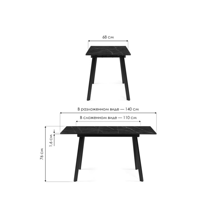 Стол стеклянный Агни металл, королевский мрамор/черный 68x110x75 см