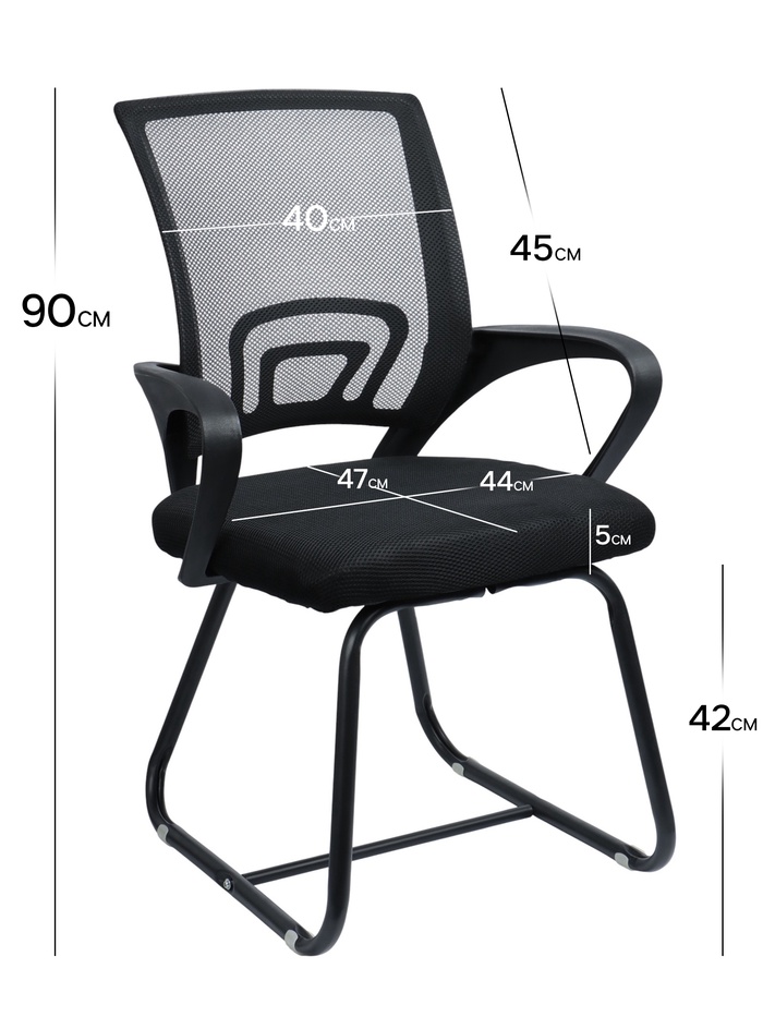 Предназначен для использования в офисных и рабочих помещениях. Конструкция на полозьях обеспечивает устойчивость и лёгкое перемещение, подлокотники добавляют комфорт при сидении. Сетчатая спинка обеспечивает вентиляцию и поддерживает правильное положение спины.