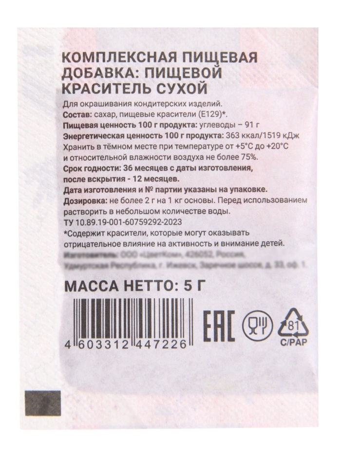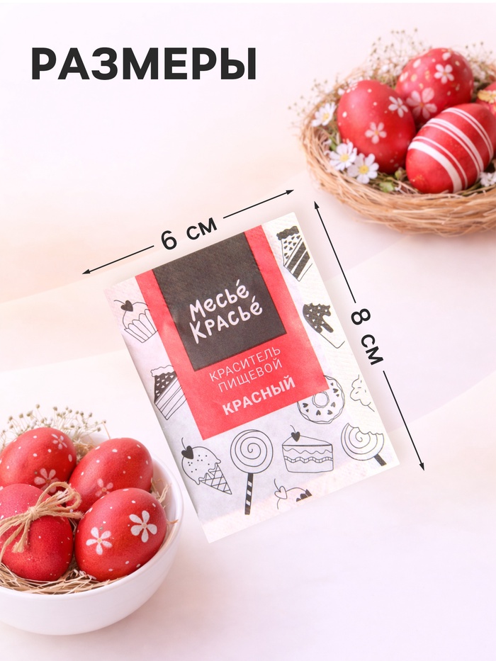 Для традиционной Пасхи без сюрпризов: Этот краситель создан для тех, кто ценит классику и предсказуемый результат. Красные яйца – это символ праздника, и с этим красителем они получаются именно такими, какими и должны быть: яркими, нарядными, праздничными. Никакой возни с натуральными красителями, никаких бледных и неравномерных оттенков. Просто разведите порошок в воде, и через несколько минут у вас будет десяток красивых красных яиц. А оставшийся краситель можно использовать для окрашивания глазури или крема, создавая единую цветовую гамму пасхального стола. Пять грамм – это идеальный запас для создания праздничного настроения.