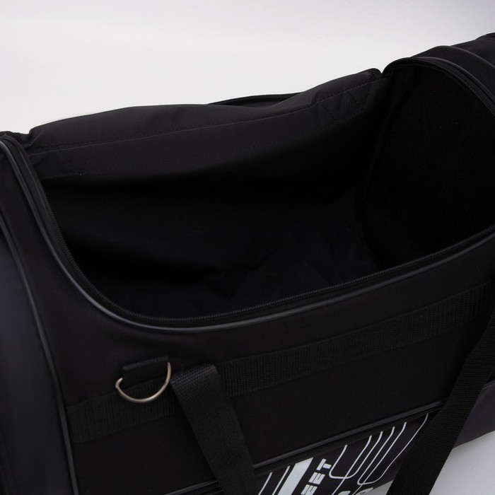 Сумка спортивная на молнии, 3 наружных кармана, длинный ремень, большой размер, цвет чёрный