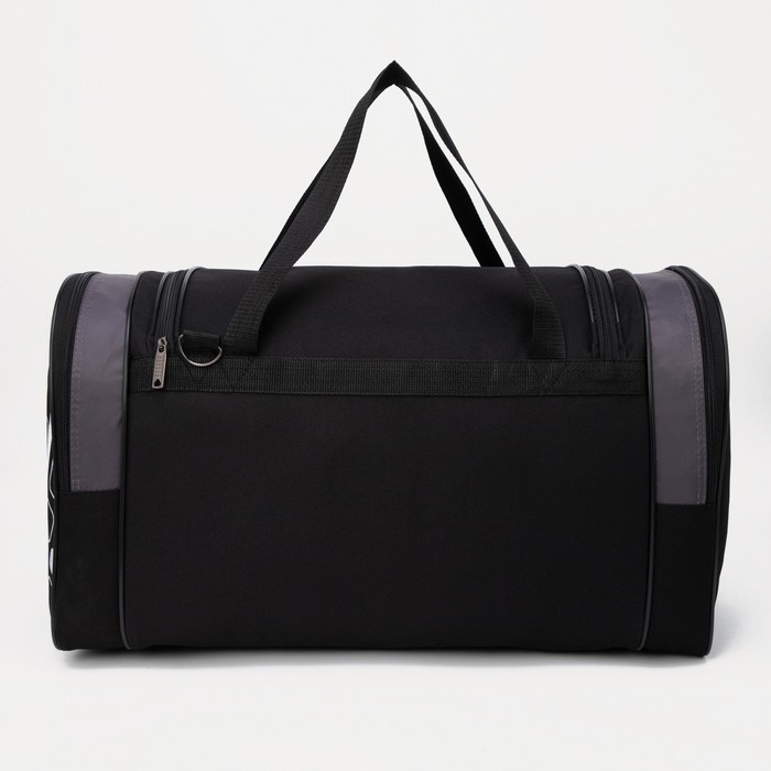 Сумка дорожная, 3 отдела на молниях, наружный карман, длинный ремень, цвет чёрный/серый