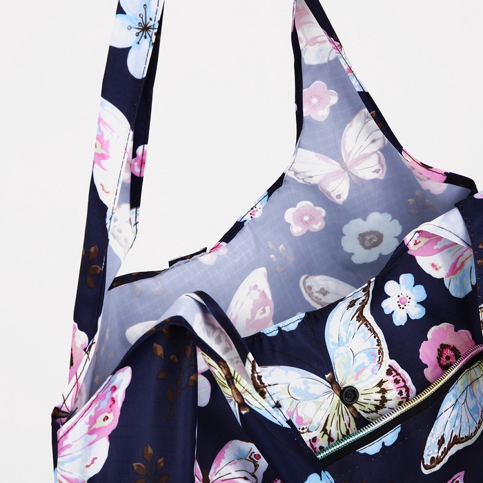 Эта складная хозяйственная сумка станет незаменимым помощником для современной женщины. Выполненная в насыщенном синем цвете с тематическим дизайном "Бабочки", она сочетает в себе стиль и функциональность. Застёжка на кнопке обеспечивает надёжное закрытие, а текстильный материал делает её лёгкой и удобной для повседневного использования.