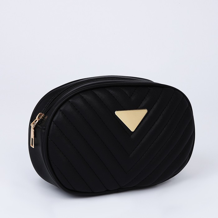 Сумка женская поясная с прострочкой 20×13×6 см, чёрная