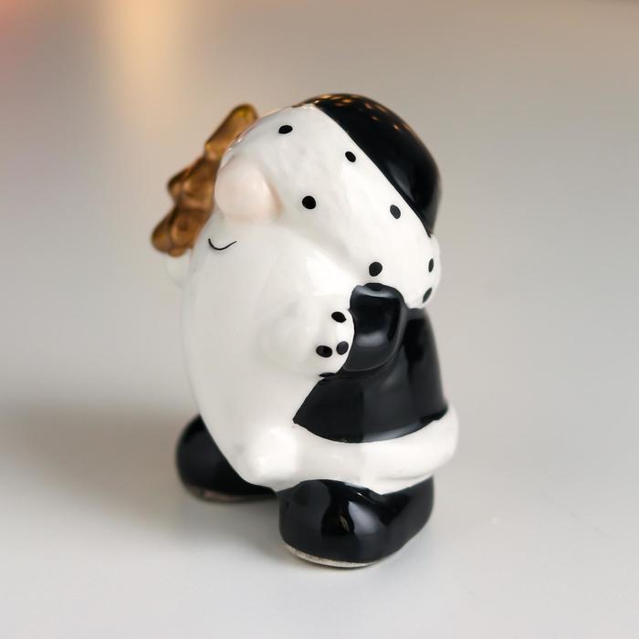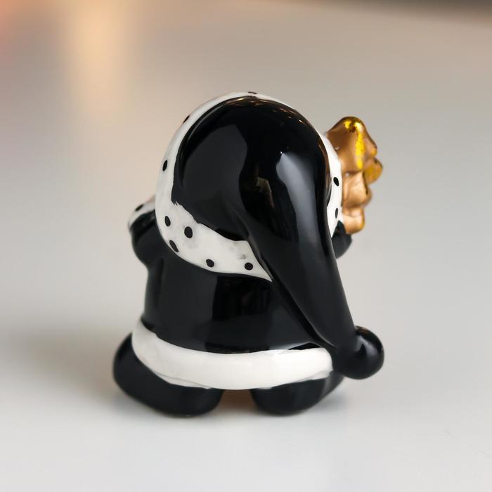 Сувенир керамика "Дедушка Мороз, чёрный кафтан и колпак в горох, золотая ёлочка" 7,8х7х6 см