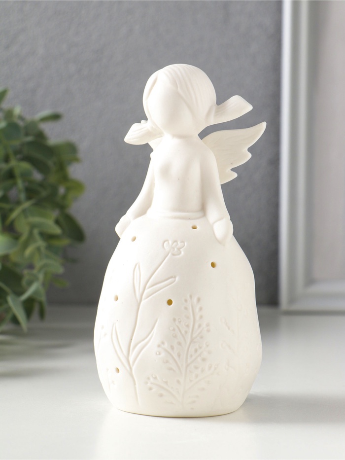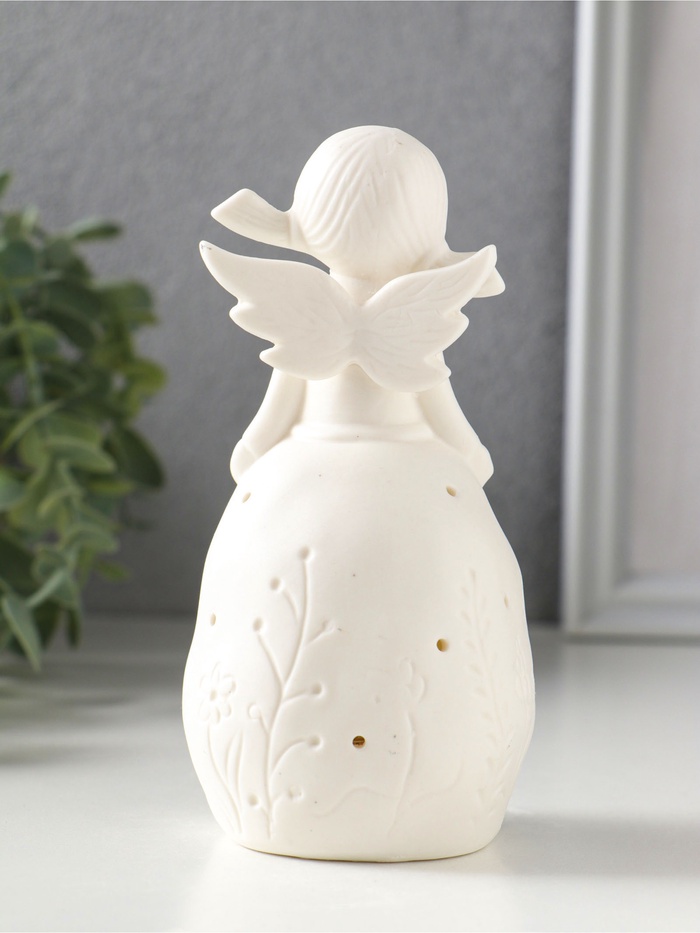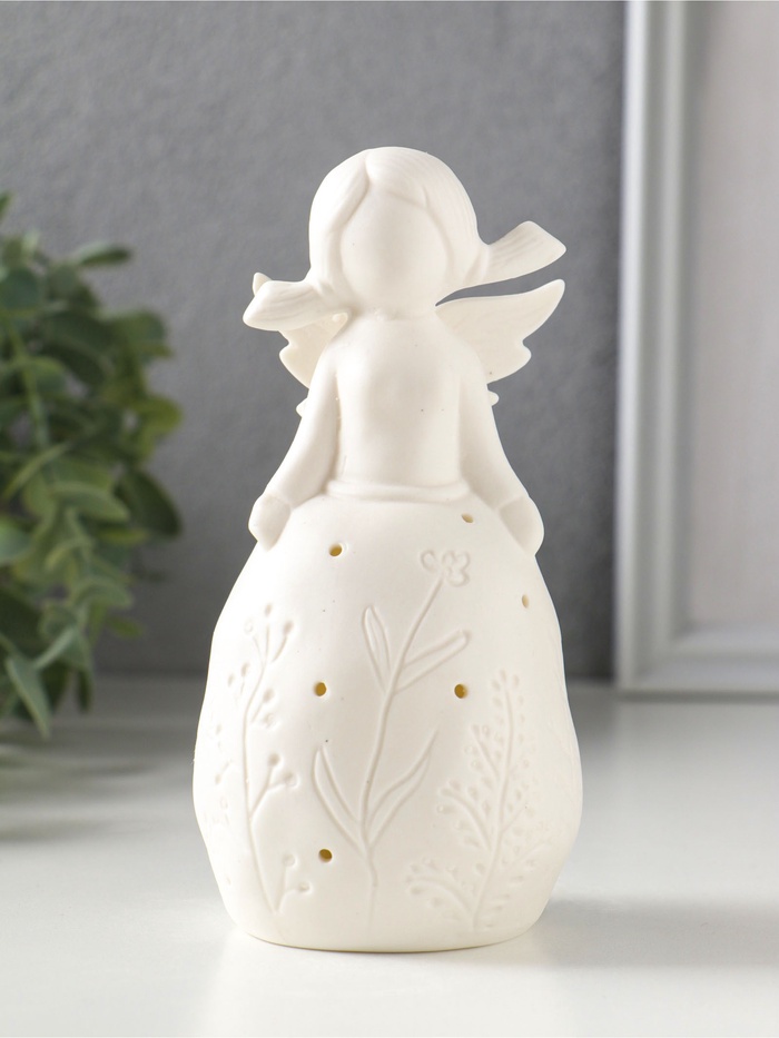 Сувенир керамика свет "Девочка в платье с растениями" белый 3хLR44 6,6х6,2х13,5 см