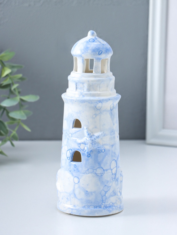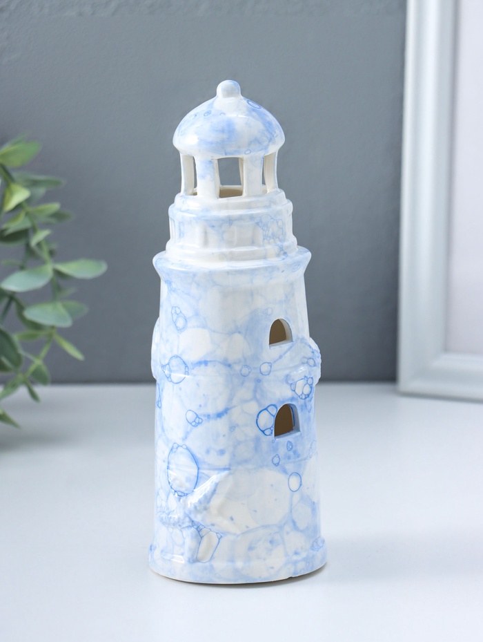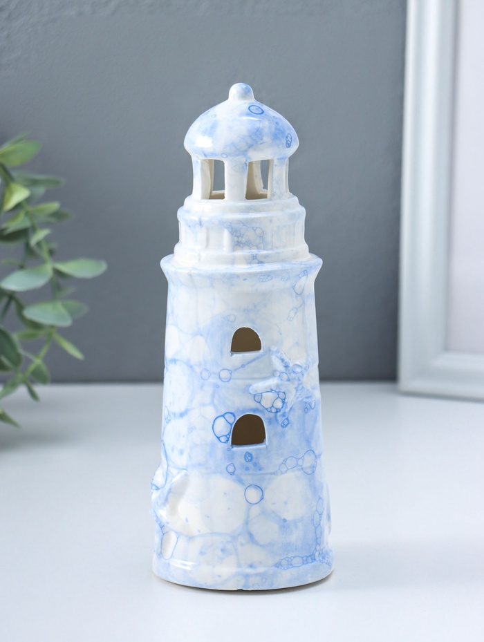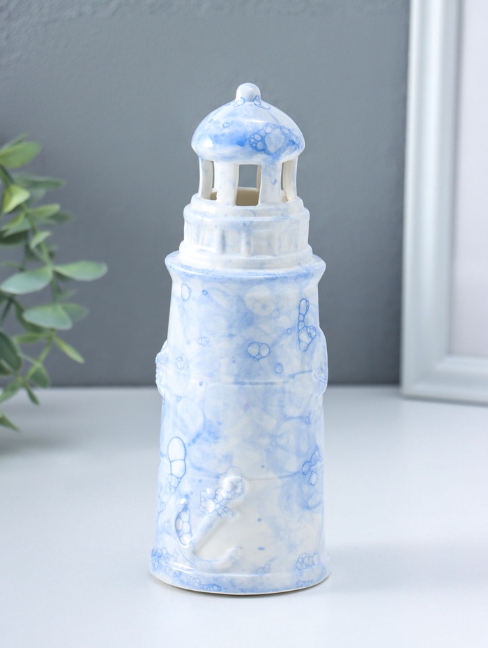 Сувенир керамика свет "Маяк" мраморный бело-синий 6,5х6,5х18 см