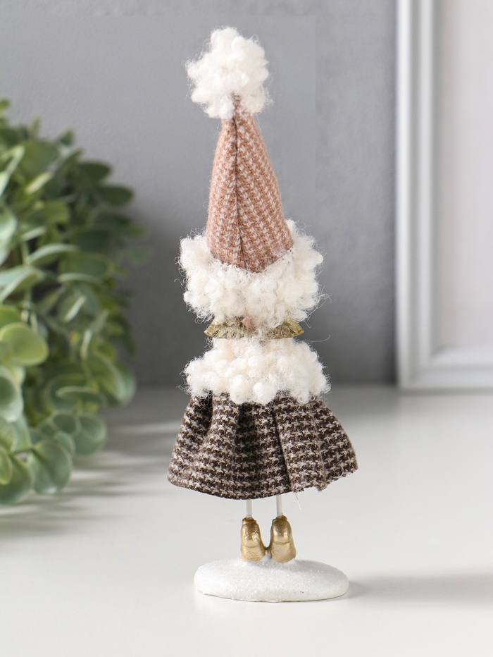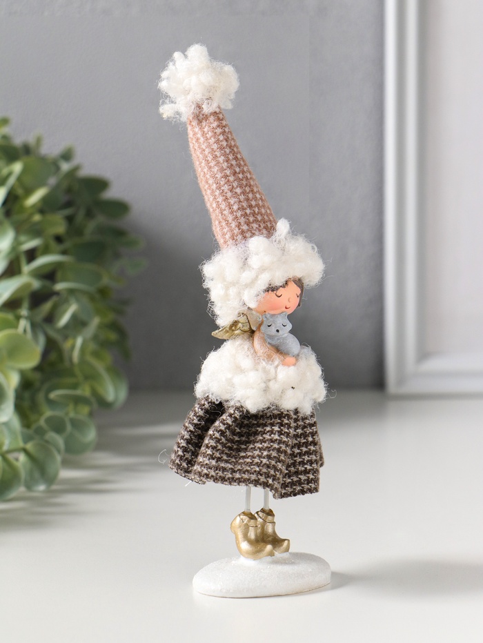 Сувенир полистоун "Ангелочек в клетчатом наряде с мехом, с лисичкой" 5х4х17,5 см