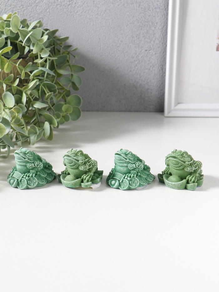 Сувенир полистоун "Денежная жаба на монетах со слитком" набор 4 шт зелёный 5х4,3х4 см