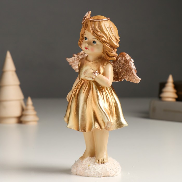 Сувенир полистоун "Девочка-ангел в золотом платье" 5,5х11,5х18 см