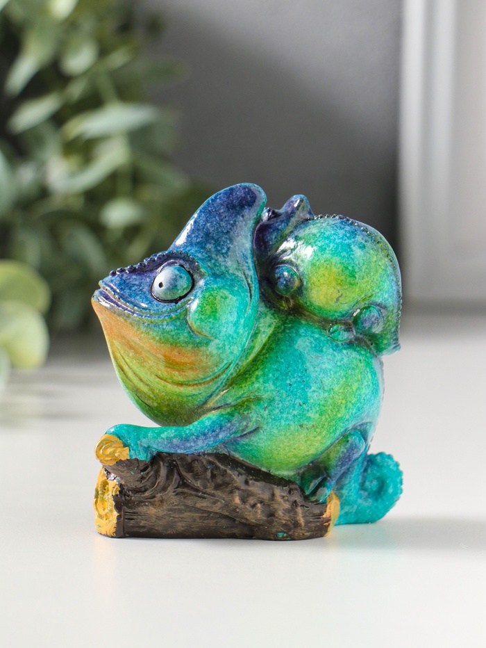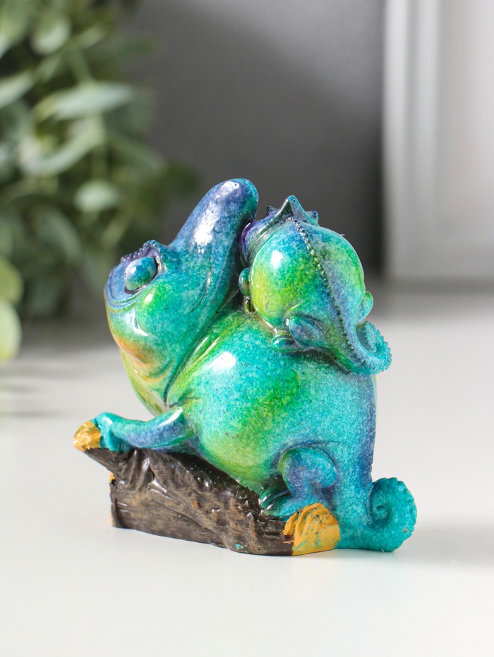 Сувенир полистоун лак "Хамелеон с детёнышем на спине" сине-зелёный 8,5х5,2х8,5 см
