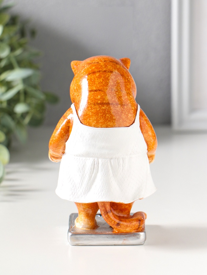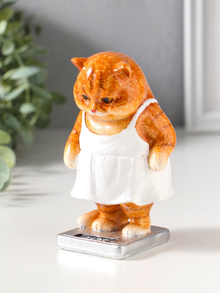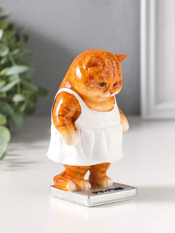 Сувенир полистоун лак "Кошка в белом сарафане стоит на весах" 7,5х7,2х12,5 см
