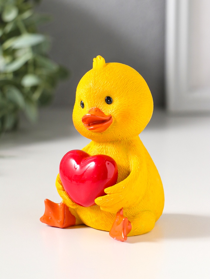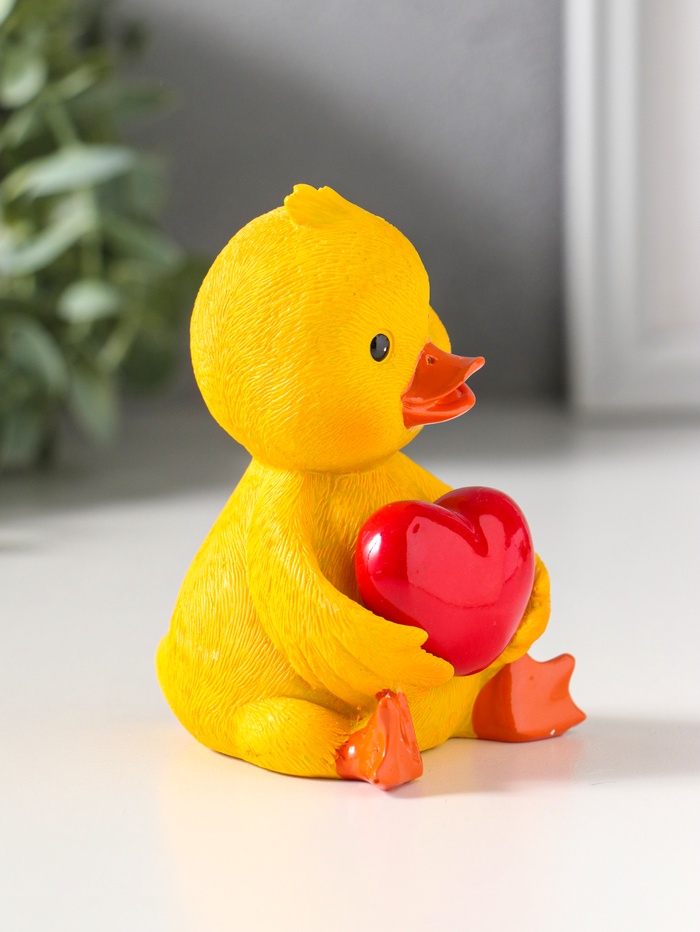 Сувенир полистоун лак "Жёлтый утёнок с красным сердцем" 6,5х6,2х9,5 см