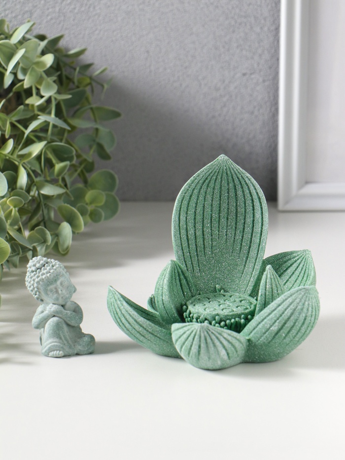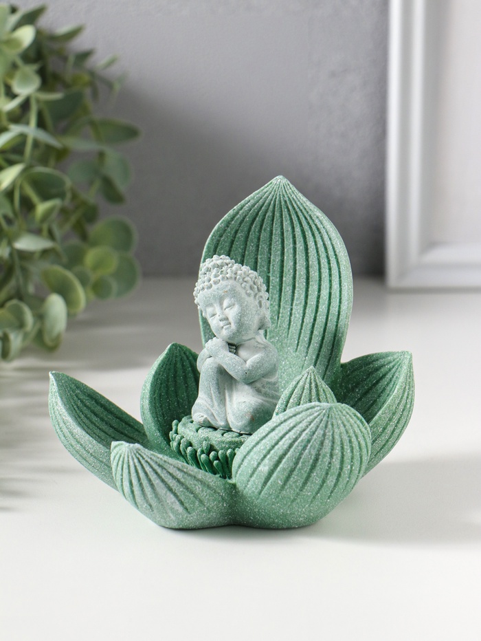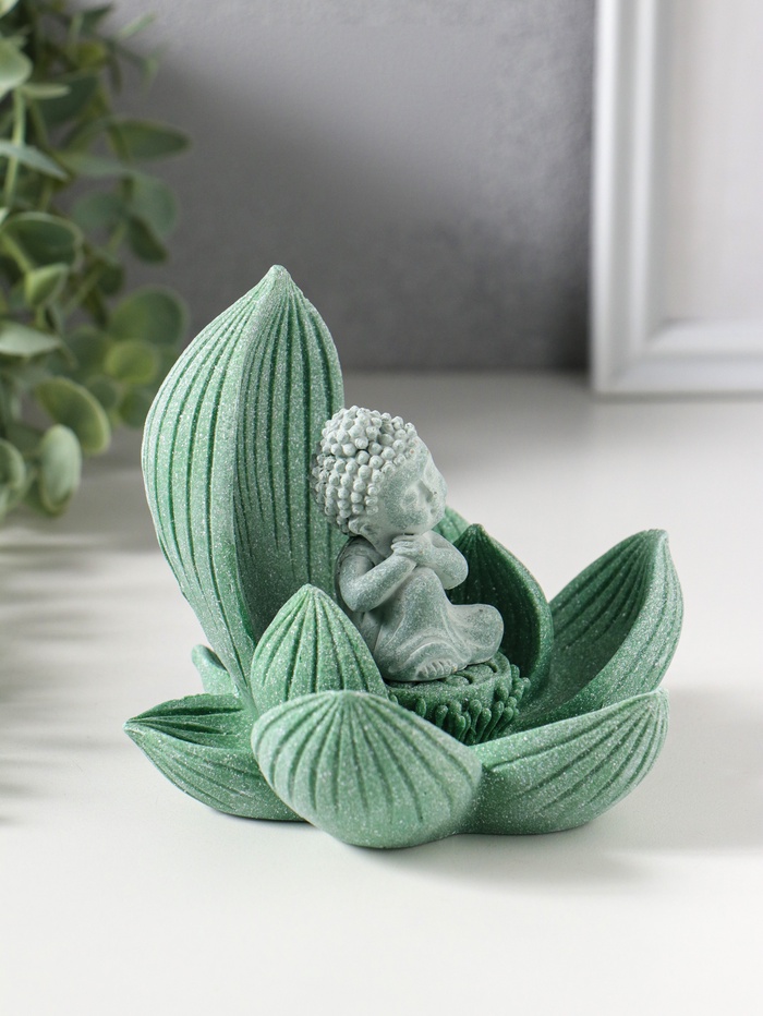 Сувенир полистоун "Лотос и Будда" зелёный 12,5х12,5х11 см