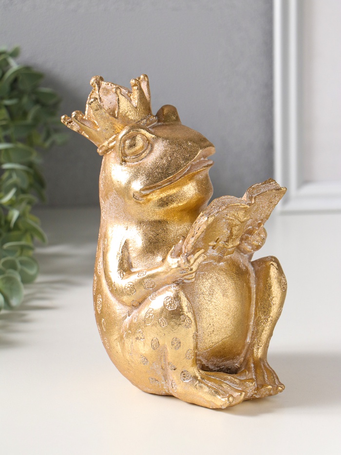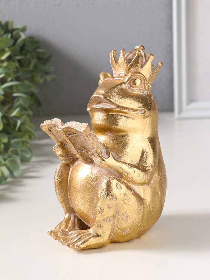 Сувенир полистоун "Лягушка в короне, читает книгу" золото 12х9,3х17 см