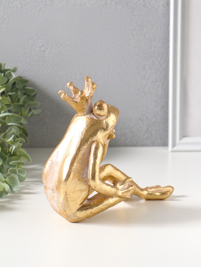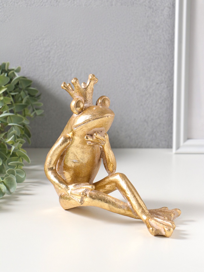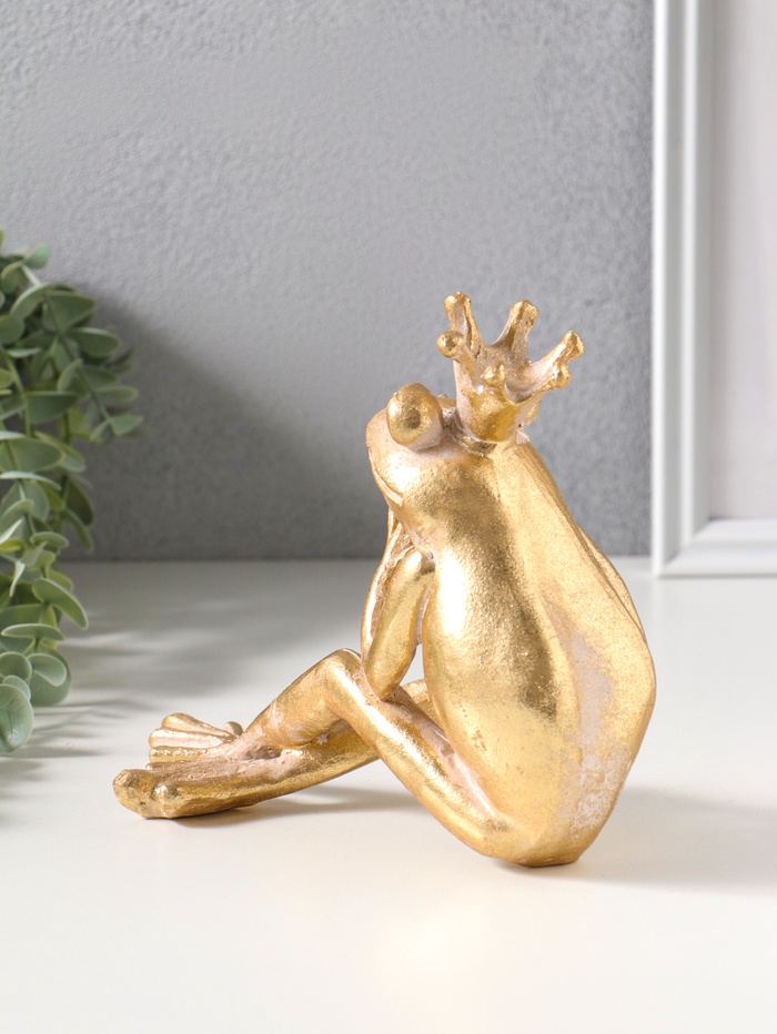 Сувенир полистоун "Принцесса-лягушка в короне" золото 19х9,3х16,5 см