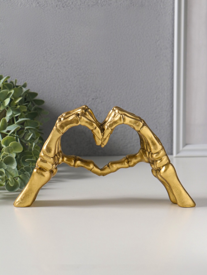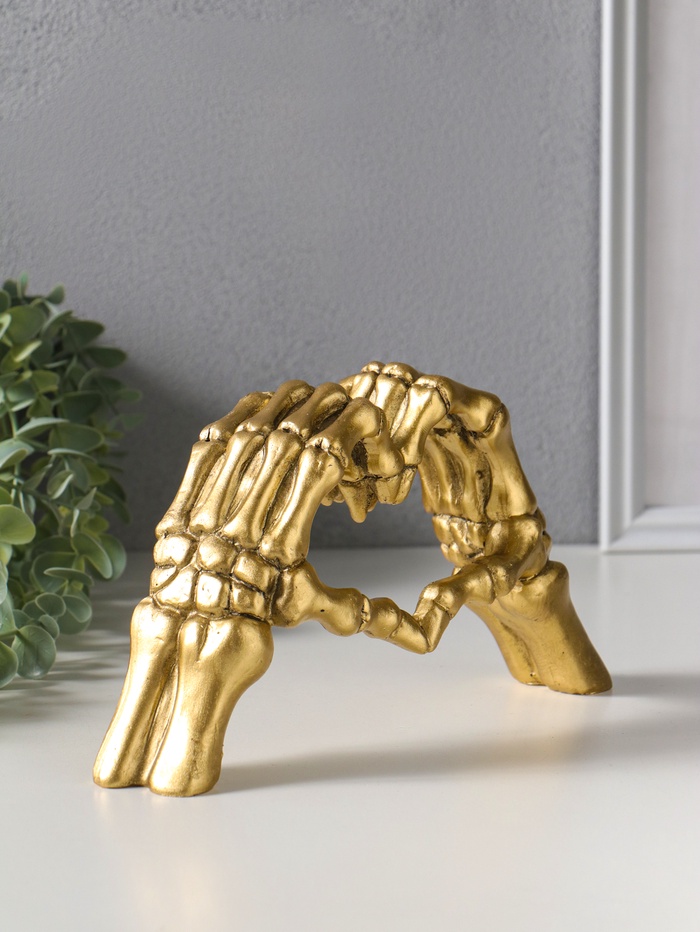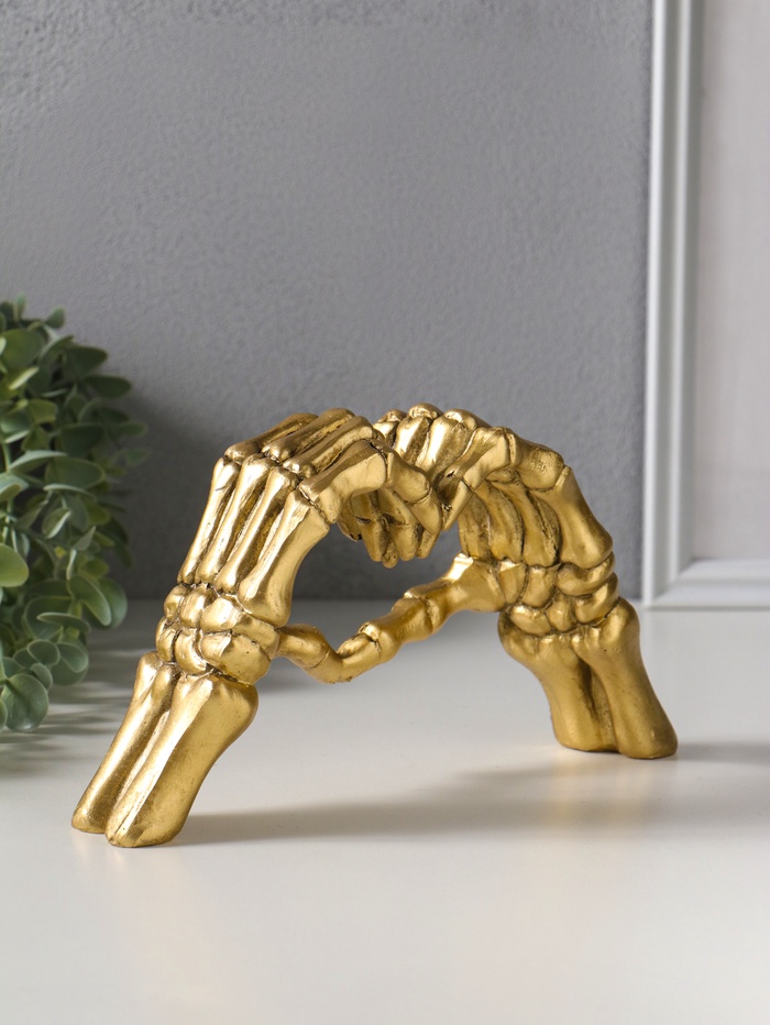 Сувенир полистоун "Руки скелета в форме сердца" золото 24х6,5х13 см