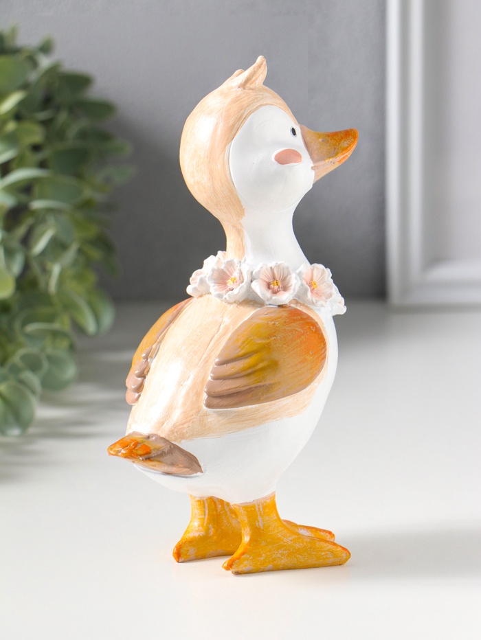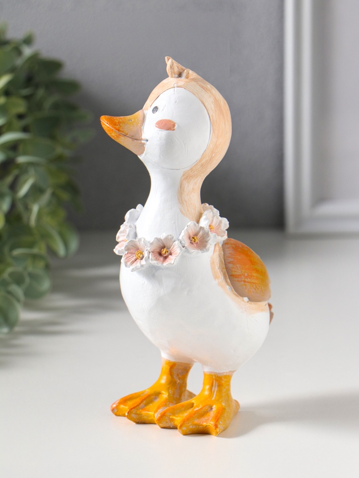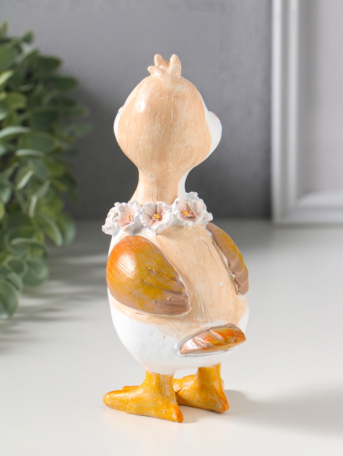 Сувенир полистоун "Утёнок с цветочным венком на шее" 9,5х6,5х17 см